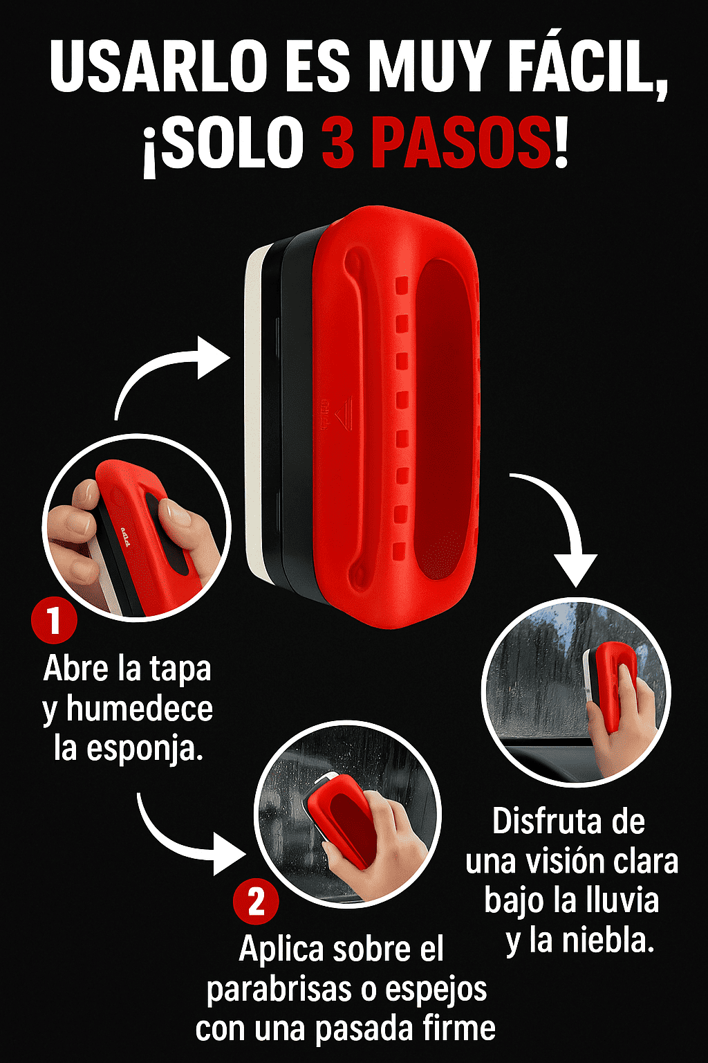 Lo uso todos los días antes de manejar y el vidrio no se empaña más. Funciona perfecto incluso cuando llueve. Recomendado al 100%.