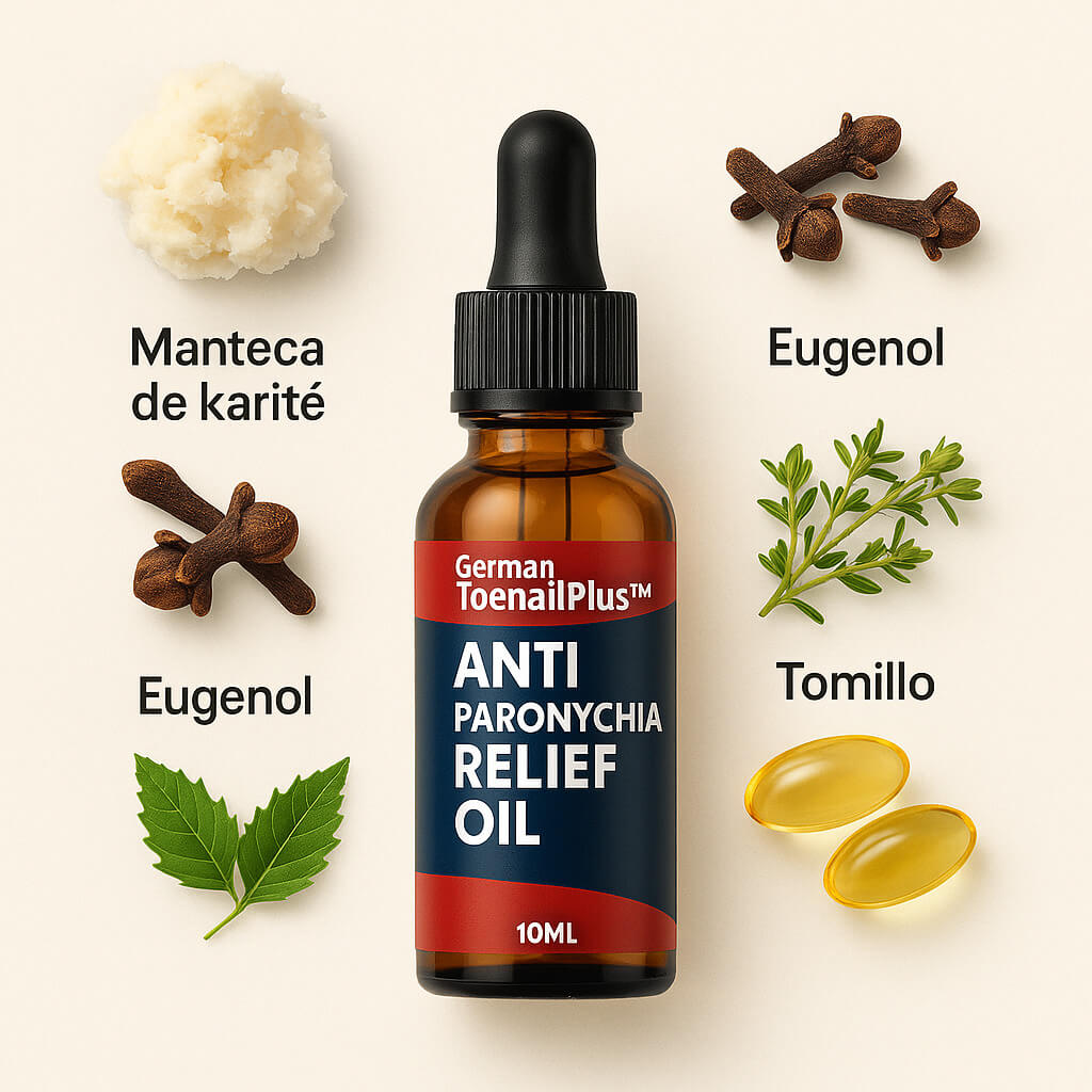 Este aceite actúa desde la raíz con ingredientes naturales como manteca de karité, aceite de clavo, eugenol, tomillo y vitamina E, conocidos por sus propiedades antifúngicas y regeneradoras.